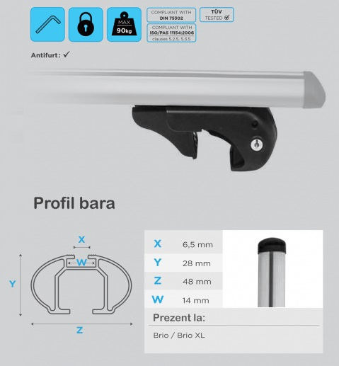 Barele au sectiune aerodinamica si se potrivesc pentru toate tipurile de portbagaje (cutii portbagaj, suport bicicleta, suport schi, portbagaj caiac/canoe, etc.).